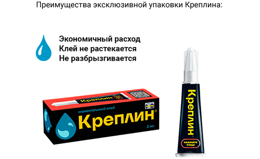 Креплин это простой в использовании моментальный клей. Креплин подходит как для мелкого домашнего ремонта, так и для решения сложных технических задач. Несколько секунд и множество разнообразных материалов будут склеены.