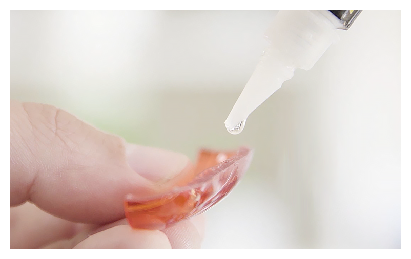 Нанеси только одну капельку на одну из склеиваемых поверхностей. Можно нанести клея больше, если расстояние между каплями будет не менее 2см.