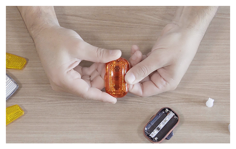 Зафиксируйте склеенную деталь на 60 секунд. Рекомендуется крепить отремонтированный катафот на место спустя 1 час.