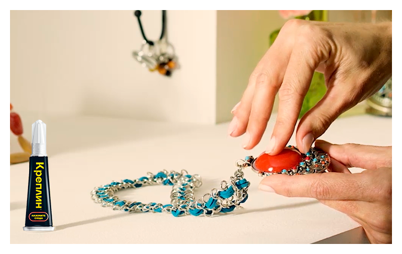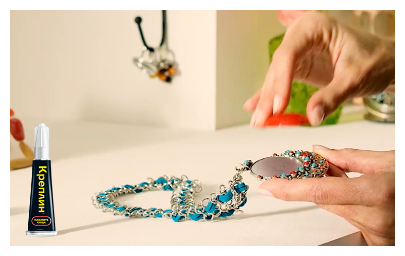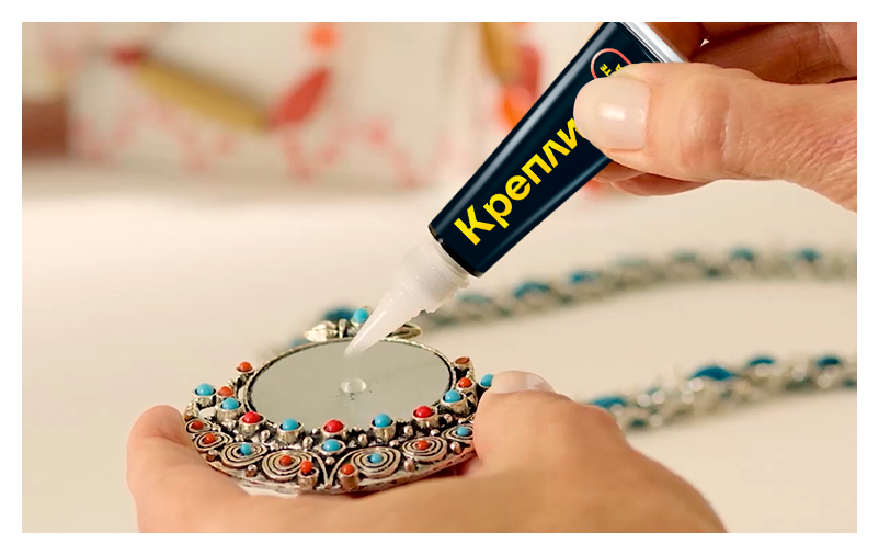 Покажем тебе как приклеить камень от ожерелья с помощью Креплин®, следуя этим простым четырём шагам.